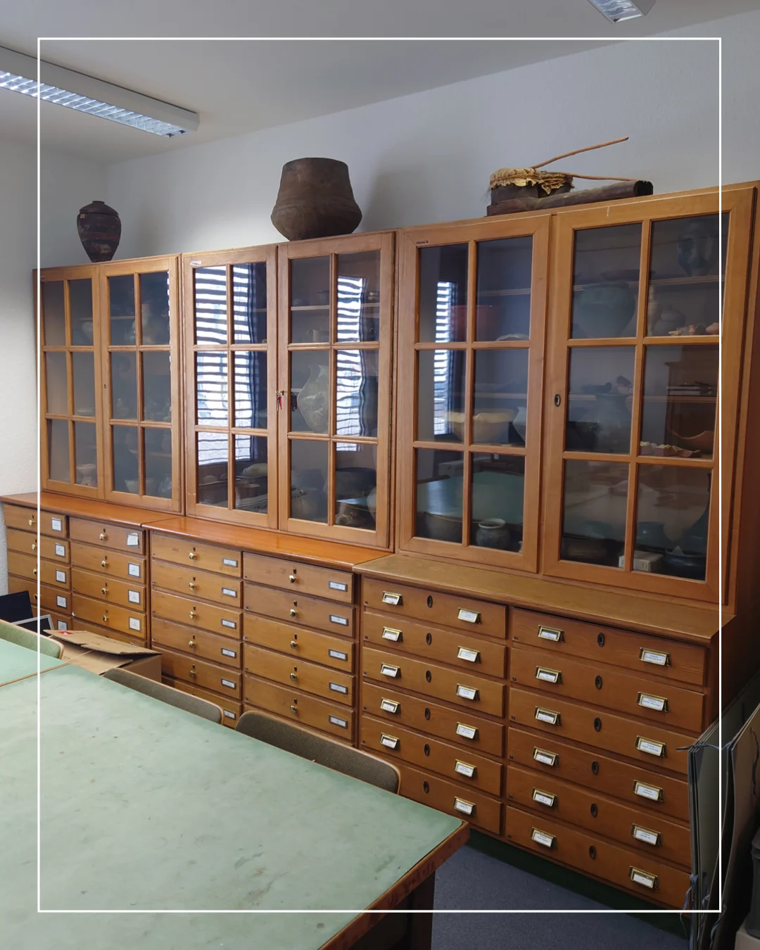 Nachdem die zugehörigen Objektinformationen zunächst zeitbedingt auf maschinenschriftlichen Karteikarten vermerkt worden waren, arbeiten wir seit den 2010er-Jahren an der Digitalisierung der Sammlungsbestände, die seit Kurzem in einer eigenständigen „directus“-Oberfläche verfügbar sind. Dieser Datenbestand soll in absehbarer Zeit im Rahmen der Digitalisierung der Bonner Museums- und Sammlungsbestände öffentlich zugänglich und recherchierbar sein.Als reine Lehr- und Studiensammlung sind wir kein Museum, daher können interessierte Studierende oder Wissenschaftler*innen Zugang zu den Materialien nur nach vorheriger Rücksprache erhalten.