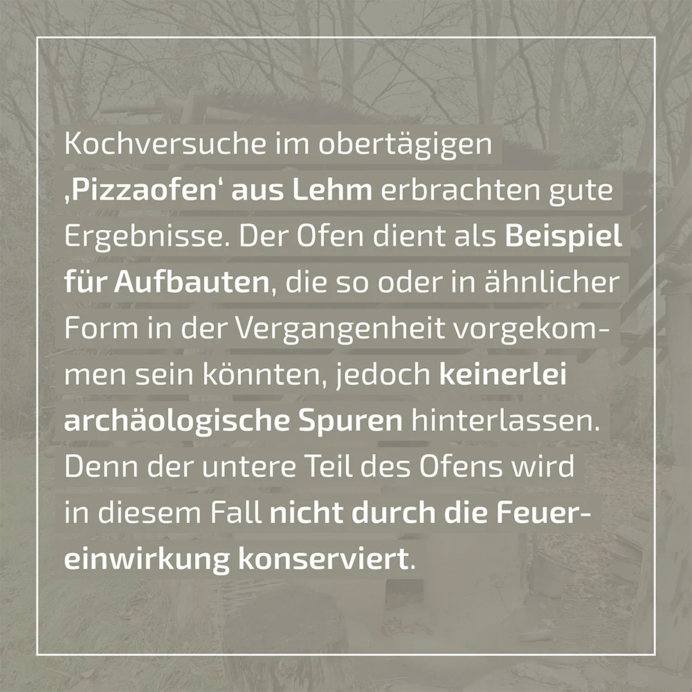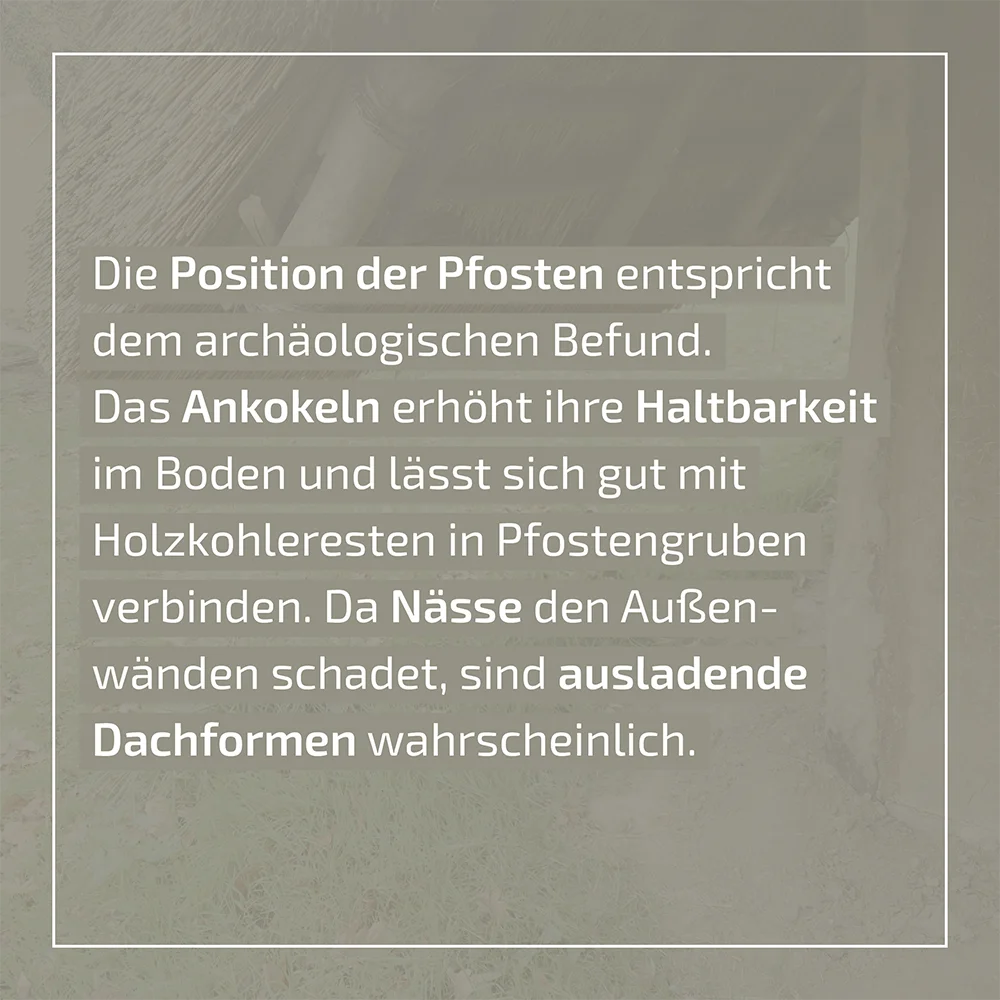 Die kritische Auseinandersetzung mit der häufig fehlenden Nachweisbarkeit baulicher Aspekte, wie der Gestaltung von Dächern und Gebäudehöhen, oder dem Einsatz von obertägigen Öfen für die Nahrungszubereitung, ist hierfür ebenso wichtig, wie der Einsatz von Detailwissen, zum Beispiel zur Behandlung von Holzpfosten mit Feuer, um ihre Haltbarkeit in der Erde zu erhöhen.