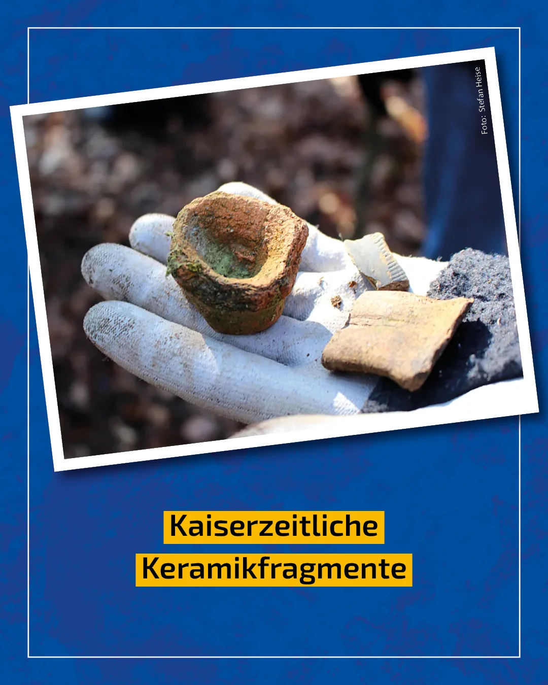 Die Auswertung der Keramikfunde, die teilweise in das 4./.5 Jahrhundert datieren, deutet bereits jetzt eine wesentlich längere Laufzeit des Fundplatzes an, als bisher angenommen.
