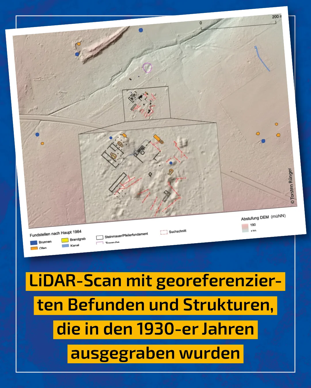 Seit 2023 steht das Töpfereizentrum im Fokus neuer Forschungen des Instituts für Archäologie und Kulturanthropologie der Universität Bonn. Unter Leitung von Prof. Dr. S. Feuser und Dr. T. Rünger und in Kooperation mit verschiedenen Institutionen* kamen in einer ersten Projektphase verschiedene Prospektionsmethoden zum Einsatz, um die Ausdehnung des Fundplatzes zu erfassen – darunter Magnetik, Radar, LiDAR-Scan und multispektrale Fernerkundung mittels Drohnen. Durch mehrere, mit Studierenden durchgeführte Surveys auf Ackerflächen und im Wald konnten bisher unbekannte Trümmerstellen lokalisiert sowie eine seit den 1940er-Jahren bekannte Fundkonzentration bestätigt werden.