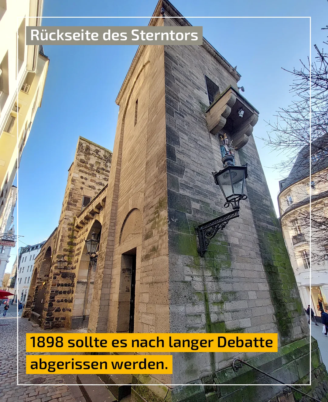 Glücklicherweise engagierten sich bereits damals Personen für den Denkmalschutz und den Erhalt des Sterntors. In den 1890ern erreichte die Debatte unter Druck der Regierung schließlich ihren Höhepunkt. Als das Sterntor 1898 tatsächlich abgerissen werden sollte, griff Kaiser Willhelm II. persönlich ein. Unter seinem Einfluss wurden die Reste des Tores an einen alten Halbturm der Stadtmauer angeschlossen und an der heutigen Position wiederaufgebaut.
