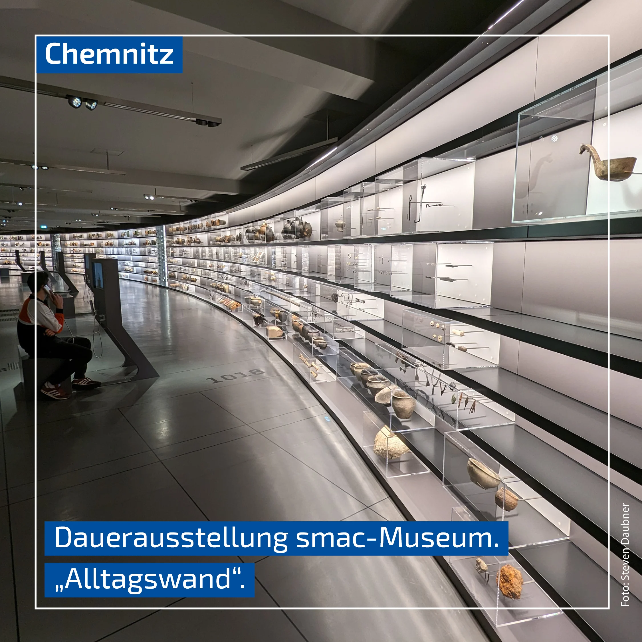 Nach einer Übernachtung in Halle folgte am nächsten Vormittag ein Besuch im dortigen Landesmuseum für Vorgeschichte. Bevor uns Dr. Michael Schefzik durch die vielseitige Dauerausstellung mit Highlights wie der Himmelsscheibe von Nebra führte, wurden wir in der Sonderausstellung „Magie – Das Schicksal zwingen” mit Kurator Nico Schwerdt durch diverse ‚magische‘ Objekte aus verschiedenen (Zeit-)Räumen verzaubert. Noch am selben Nachmittag führte uns Dr. Ulrich Thaler durch die Dauerausstellung und Sonderausstellung „Home Sweet Home” im Staatlichen Museum für Archäologie Chemnitz. Letztere veränderte unseren Blick auf das Thema Wohnen und die Perspektive der Archäologie auf verschiedenste Objekte im Wohnkontext. Nach einer sehr spannenden Übernachtung in Chemnitz ging es für uns am 05. April wieder zurück nach Bonn.