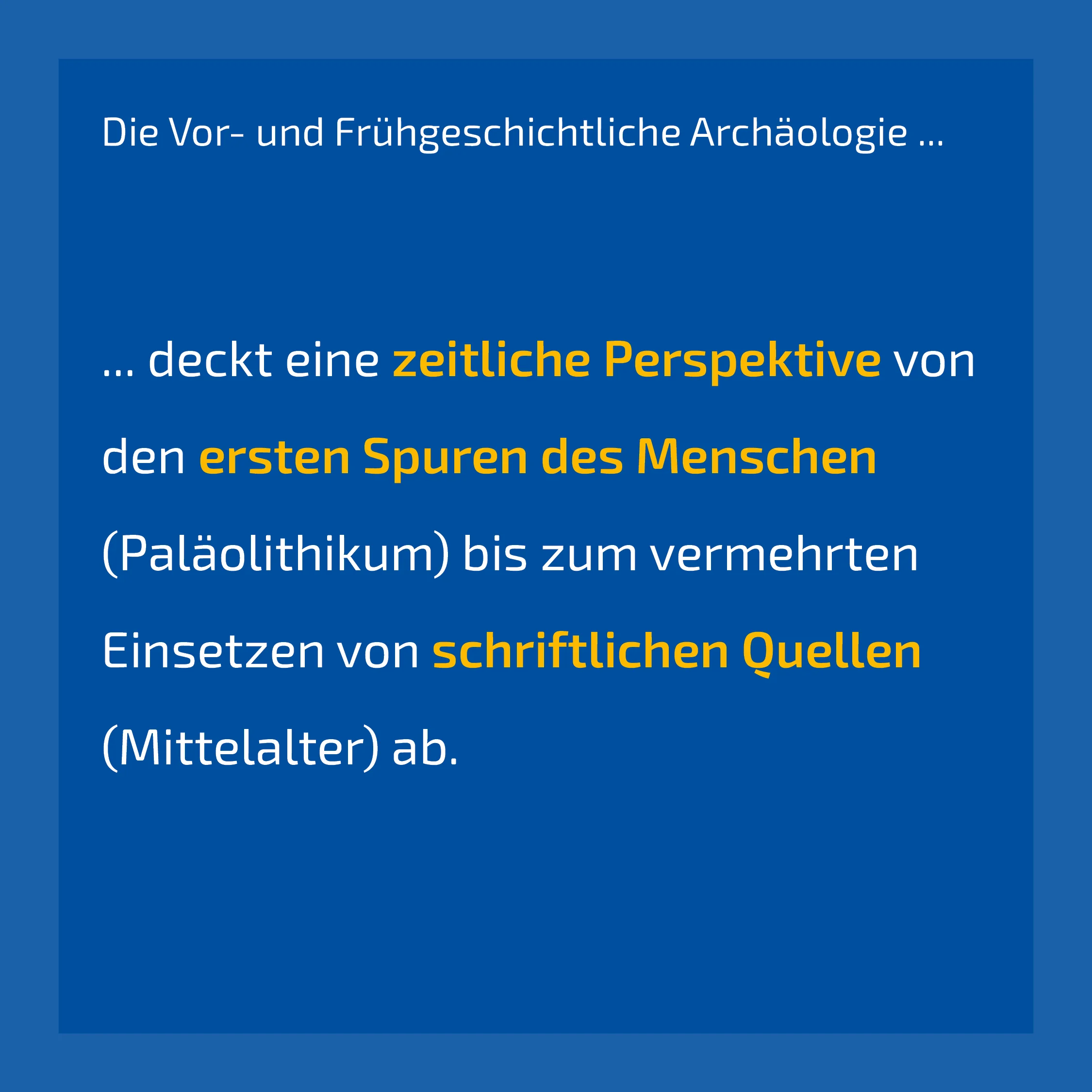 - deckt eine zeitlich Perspektive von den ersten Spuren des Menschen (Paläolithikum) bis zum vermehrten Einsetzen von schriftlichen Quellen (Mittelalter) ab.